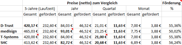 - Preise und Preiszusammensetzung (marginal, einmalige Einrichtungsgebühr medisign)